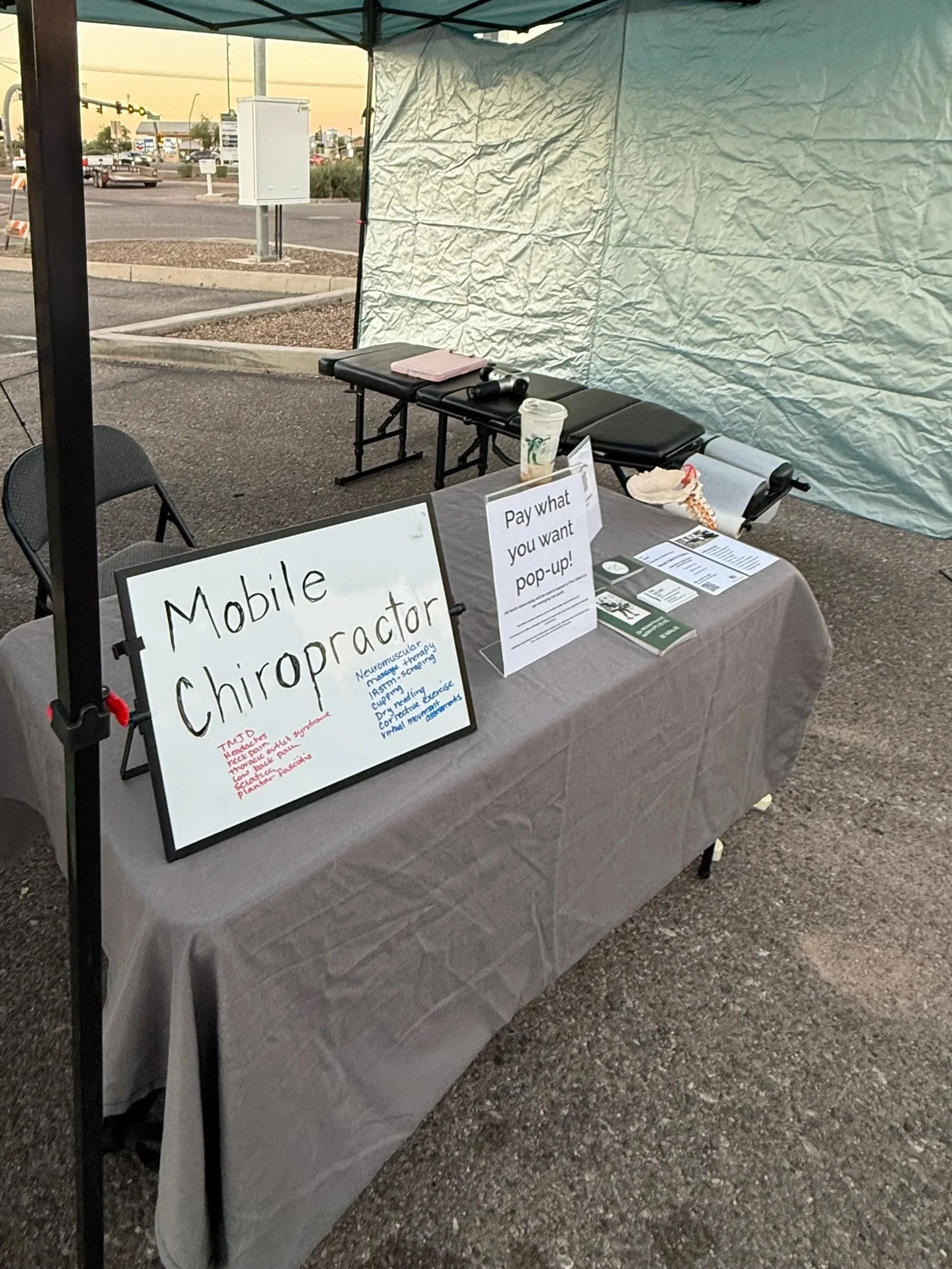 Each month, we host Pay What You Want (PWYW) outreach days, where community members can receive chiropractic and movement based care in an inclusive, supportive setting. These events aren’t just about affordability — they’re about creating space where anyone can experience hands-on care without pressure or expectation. Every dollar raised is reinvested into future outreach, equipment, and our long-term goal of building a fully equipped mobile office that can serve even more families, veterans, and underserved neighbors across the East Valley.